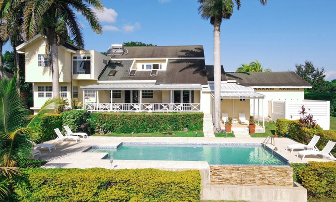 Get ready to relax in this 4-bedroom house in Martha Brae. This awesome property features 2 king beds and 2 queen beds, perfect for a group getaway. With 5 bathrooms equipped with shower, bathtub, and hair dryer, guests will feel right at home. Enjoy the serene surroundings and take advantage of amenities like AC, private pool, and a fitness area. We think our place will help you experience everything Martha Brae has to offer. Enjoy the spectacular views of the Martha Brae river and the hills of the Jamaica Cockpit Country.