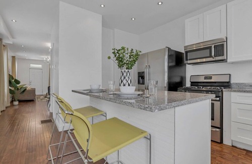Our house is perfect for small groups, families, couples, and solo travelers. It is great for a fun night out with friends or a home base for exploring Columbus. The first floor has an open living room and dining room great for relaxing, as well as a half bath and fully stocked kitchen. Upstairs is a full bathroom with walk-in shower. At one end of the house is the main bedroom with a queen bed and a desk. Down the hallway on the other side of the bathroom is the 2nd bedroom with 2 queen beds and a desk. Our location is central to the Short North area, and Downtown Columbus.