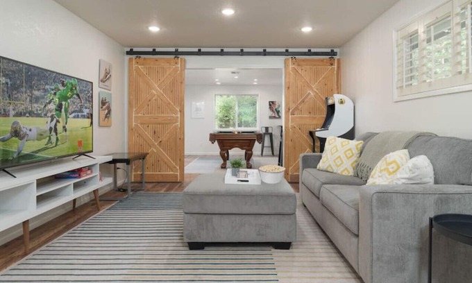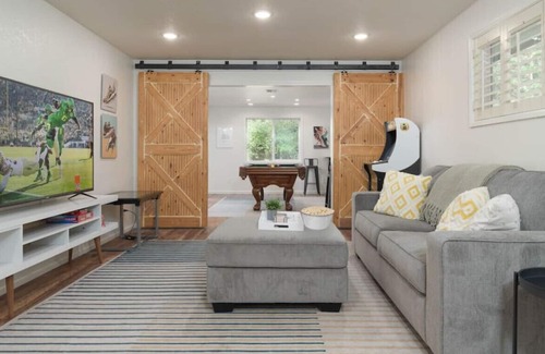 Welcome to the Reunion Game House, our spacious and inviting 4-bedroom, 2.5-bath home in the heart of Eugene, Oregon! Perfectly situated within walking distance of Autzen Stadium and just a short 10-min drive from downtown Eugene, our home is the ideal base for your next visit to this beautiful city. Entertainment enthusiasts will love our dedicated game room, complete with a high-quality pool table, Golden Tee golf arcade game, infinity game table and a cozy entertainment room for movie nights.