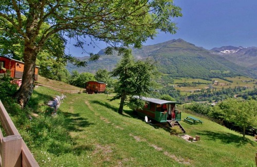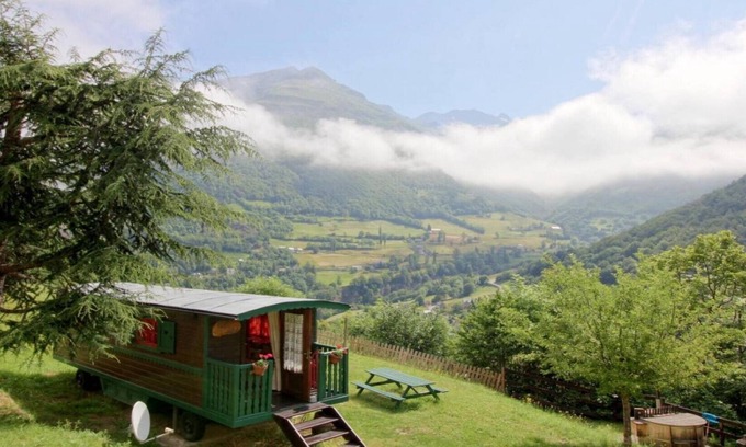 At 1130 m altitude, 400m from the fabulous Saugué plateau, at the gateway to the Pyrenees National Park, overlooking the valley of Gèdre-Gavarnie, become the moment of a gypsy stay in the Carpathians, know how to appreciate this new parenthesis of life closer to nature while enjoying a current comfort and an exceptional view of the mountain. This Ukrainian caravan shows a pretty coquetry and envelops you in a declination of colors and refined fabrics. Once the bench-bed deployed, it offers a welcome of 4 people and gifts of beautiful moments of conviviality in perspective with family or friends.