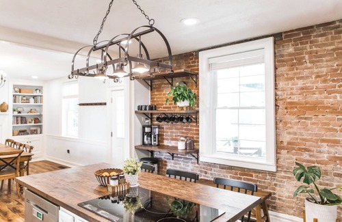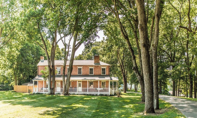 The River House is a big brick beauty, built in the 1800s. She has over 2600sqft of interior living space, with four bedrooms and two full bathrooms. She features FOUR covered porches, five acres of riverfront land, and a Spring House built in the 1790s. While she still holds her historic charm, she's been updated to ensure your whole family or friend group is comfortable while she houses you. Let me tell you more about her: