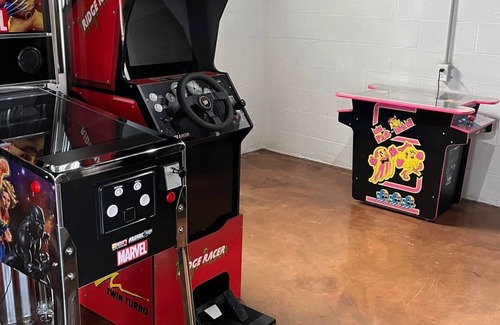 There is free onsite parking in our large driveway that can accommodate multiple vehicles. The ground level family room opens up to a patio space that looks out over the water. It features a large 65” smart tv, retro style video games, and a bar with a beverage refrigerator. There is a washer and dryer available.
