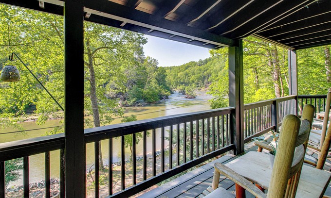 This riverfront Ellijay cabin is the Georgia getaway of your dreams! The stunning vacation rental boasts 3 bathrooms, 3 bedrooms, a loft, and an open-concept living space — ample room for you and your crew to spread out and unwind. Whether you’re looking for scenic outdoor recreation or yearning to relax on-site, this retreat offers opportunities for any adventuring style. Enjoy access to Coosawatee River Resort amenities, which include pools and a well-appointed recreation center.