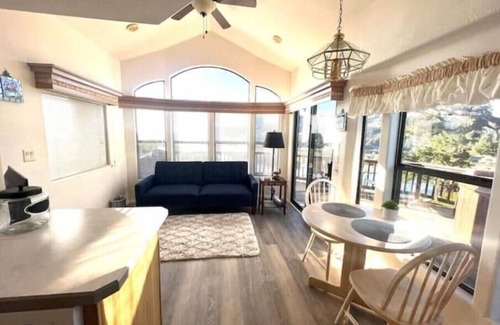 This unique cabin has a style all its own. Overlooking the beautiful mountains and the powerful Rogue River, this cabin’s spectacular view makes it a place hard to forget. This cabin comes with a queen bed in the private bedroom and 2 bunk beds in the hall corridor. It has a kitchen, eating area living room and full bathroom as well. the views from the front deck are amazing. Great for friends or family!
