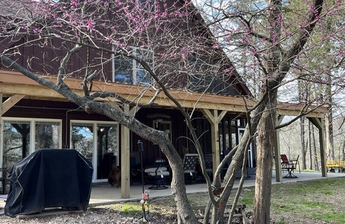 What’s new: outdoor shower and tv and children’s swing set. From camping to glamping, The River's Edge B & B LLC is sitting on the edge of the scenic Illinois River, where wildlife, rafting, kayaking, hiking and fishing abound. Watch the sun rise over the mountain or tour the historic Cherokee stomping grounds. There's something for everyone! This full-house includes 5 bedrooms and sleeps 15, is family-oriented and is in a residential neighborhood so if you want to escape the noise, this is your place! Please be aware that the house sets on an unfenced bluff, therefore not suitable for small children. There are deer, birds, chipmunks, waterfowl, black bears, mountain lions, coyotes. There could also be less desirable wildlife/insects such as spiders, ticks and snakes.