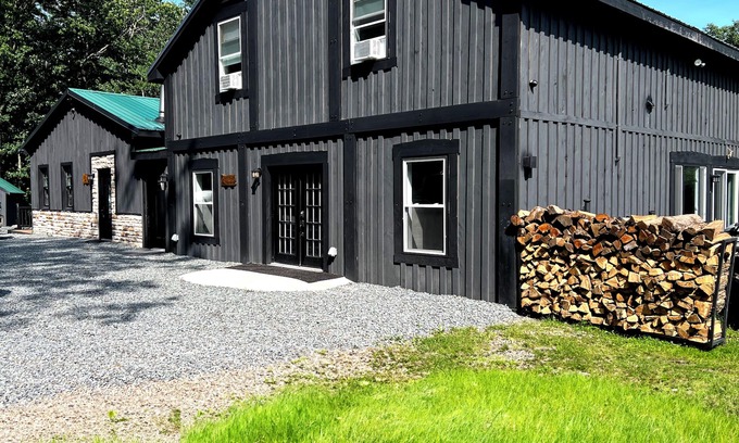 4,000 sq. ft. Cabin located on 200 acres of secluded land in Upstate New York. 5 Bedrooms - 3.5 Baths. 7 Full Bunks, 5 Queen Beds - Sleeps 24 comfortably. Surrounded by beautiful land and trees on top of the mountain; this is the place of serenity and peace you're looking for to getaway and relax. We're 5 minutes from the city & 15 minutes from Coopers Park!! *We have 3 cabins on the grounds for couples available as well.