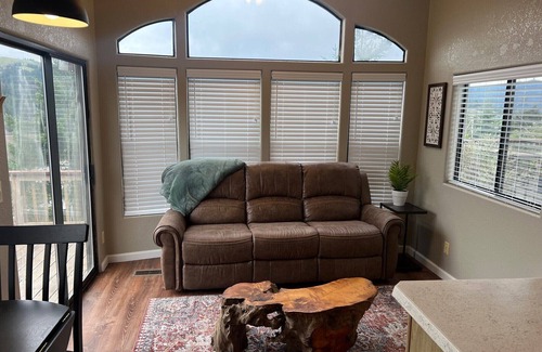 Enjoy the beautiful view of the Rogue River from the hot tub on this cabin's expansive deck. The Cabin comes furnished with a Full Bed in the bedroom and 2 twin beds in the loft. The views of the mountains and river from both inside and outside the cabin are breathtaking. This cabin i home away from home, complete with a living, dining, bathroom, and kitchen in addition to the sleeping spaces. This is the perfect getaway retreat for a couple or family.