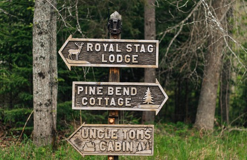 Down the gated driveway, surrounded by old-growth forest and overlooking the Au Sable River, rests The Royal Stag Lodge.