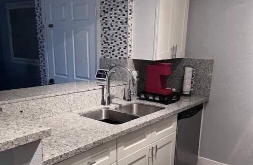 The Ruby Home has been fully remodel. The kitchen features white shaker cabinets and granite countertops. The bathroom hast tile top to bottom, new vanity with granite counter top, glass shower doors and dual shower heads. The bedrooms are styling and each offers a smart TV, alarm clock, and a work space. The dining room and living room are contemporary and beautifully decorated.