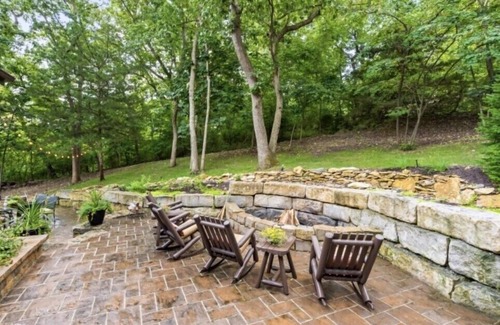 Outside you will find 3 large patios , a massive fire pit. A hot tub that looks onto a waterfall and a deck with a pergola. One would think they are in the Rockies but only 3 miles from shopping and Dinning Easy drive to The plaza and Kauffman Stadium.