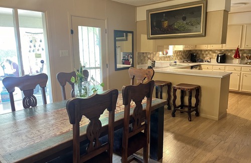 Your Laredo adventure begins at this beautiful 1,757 sq. ft. 3 bedroom, just remodeled home with new interior/exterior insulation. Nestled in a tranquil Belmont Plaza neighborhood adjacent to Mall Del Norte, this property offers a soothing Mexican Rustic ambiance furnished by The Rustic Gallery in San Antonio, Tx. that will make guests feel right at home. With 1 king bed and 2 queen beds, everyone will have a fabulous night's sleep. The house features 2 bathrooms, complete with a hair dryer, bathtub, and shower. Other amenities include High-speed internet, premium cable by Spectrum, washer/dryer, barbecue grill. Whether you're working, exploring the city or simply relaxing in the cozy living area, this house provides the perfect base for your stay. We're happy to assist with any questions while you stay at our charming house. The Rustic Homes, from our family to yours!