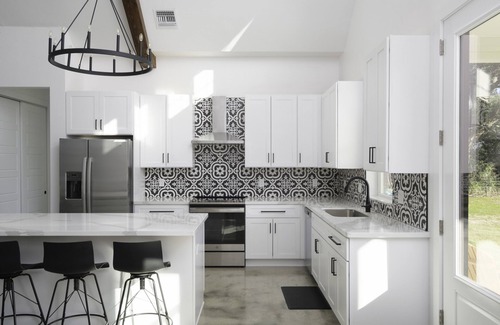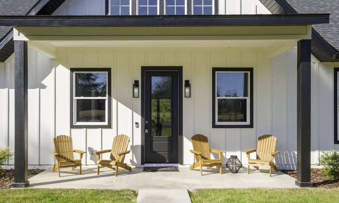 Stretch out and unwind at the spacious Rustic River Retreat! This home is brand new construction, designed with a unique style and only steps from the beautiful Ginnie Springs. The house features a huge fenced in yard with private gate, back patio, fire pit, grill and outdoor TV. There is a private master suite, and the oversized living room hosts plenty of seating. The open kitchen/dining/living with half bath and vaulted ceilings is the perfect setting for entertaining and social gatherings.