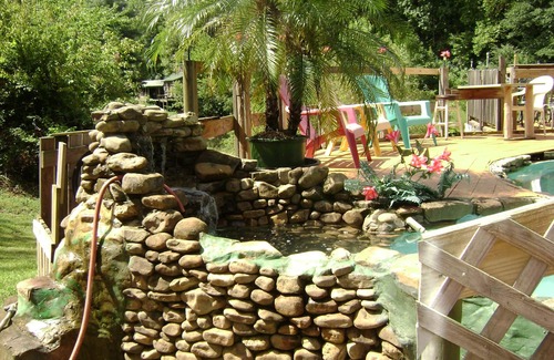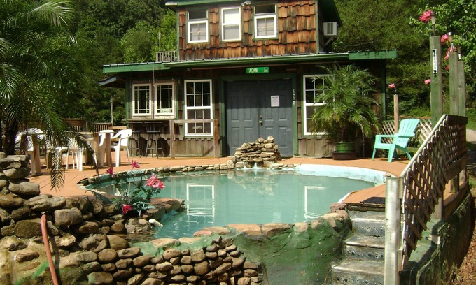 A "RUSTIC" cabin with a wharf-like feeling and your own PRIVATE POOL(natural pool fed by well water), only 20 MINUTES from downtown Chattanooga. Book your stay and enjoy all that Chattanooga has to offer. The Tennessee Aquarium, Rock City, Ruby Falls, Lookout Mountain Incline, Chattanooga Zoo, Creative Discovery Museum and much much more.