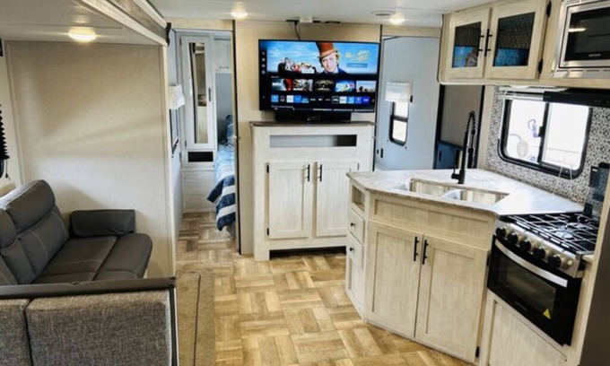 The RV Sleeps 8 - 36' is located in Tow. The RV Sleeps 8 - 36' provides accommodation, featuring Security/Safety, Child Friendly, Kitchen, among other amenities. This House features Security/Safety, Child Friendly, Kitchen, to make your stay a comfortable one.