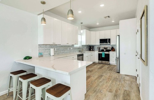 The beautiful 4BR 4.5BA will comfortably fit your large family, a girl's trip or a friends get away! There is 2 king bed, 5 queen beds, 1 full bed and 1 twin to comfortably accommodate 17 people. This property boasts two large decks and plenty of seating to take in the beach front views. Downstairs, under the house is covered where you can grill out no matter the weather. This home offers great entertainment spaces both inside and out. We have a lovely outdoor shower for use downstairs that offers hot and cold water for a quick rinse after the beach. This property is located in the City of Surfside, so you have quick access to many restaurants, Surf shops, and Golf Cart Rental Services! Check out our Guidebooks for our recommendations.
