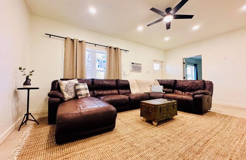 The Sandlot has 3 bedrooms and 3 full bathrooms. The master bedroom has a king bed and an ensuite bathroom with a shower/tub combo. The second bedroom has a queen bed and would use the bathroom just off the living room. One of the bedrooms is the bunk room, offering a large TV and ample space for watching a movie after a day on the lake. It has 2 full-size beds (bottom) and 2 twin-size beds (top) as well as a futon that makes into a full-size bed. The third full bathroom is accessible from the bunk room. This bathroom is also the location of the washer and dryer, which can be accessed through the kitchen as well; perfect for not disturbing the kids in the bunk room! Shampoo, conditioner and body wash is provided in each bathroom, along with soft fluffy towels. Our kitchen has all of the essentials you would need to cook all of your meals and utensils to enjoy them. We have a large refrigerator and freezer, complete with water and ice, so you can plan your grocery shopping accordingly. The living room has a very large reclining sectional, great for relaxing while streaming your favorite show using our free WIFI. The house sits on a very large lot giving plenty of room for kiddos to run and play or your furry friends to play some fetch. Being so close to Nichols Point we think our place would be great for those visiting for a fishing tournament. We have plenty of parking and outdoor outlets to charge your boats overnight.