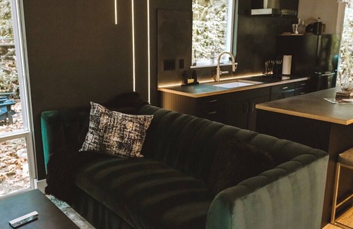 The Sea Container Cabin is a brand new, one of a kind short term rental cabin in Index WA. This luxurious container cabin is designed with high end finishes, a custom white marble & lava rock steam/rain shower, Sonos speakers throughout, surround sound movie zone with 65" Frame TV, multiple in wall LED light sculptures, floating glulam, steel, & LED stair case, and a rooftop hot tub that delights guests and exalts their souls. Book your stay today and experience something truly special.