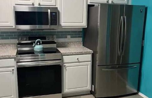 Colorful and cozy townhouse with brand new flooring throughout, all new kitchen appliances, new furniture and mattresses, and newly upgraded bathrooms. The master bedroom is very spacious with gorgeous views of the lake. The townhouse is an end unit, allowing guests more privacy. Furnished with beach chairs and beach towels, dishes, utensils, pots and pans.