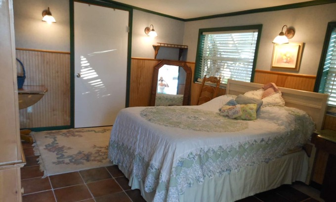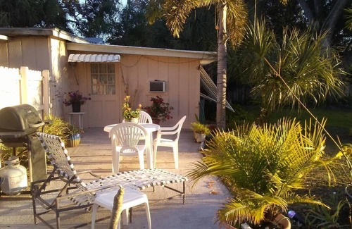 Nestled in the heart of downtown Sebastian is our 220 square foot one room studio that has been newly redecorated. This studio accommodates two people and features bath with shower, double bed, and cable tv. A new coffee pot, microwave, toaster, refrigerater and an outdoor gas grill will allow you to prepare and enjoy a delicious grilled meal outdoors on the patio. Our air conditioned studio has a private entrance so you can come and go as you please. Off the street parking and a 5 minute walk around the block provide access to the Indian River Riverwalk where you can enjoy our picnic table right on the water. It's also easy walking distance to several restaurants and live music tiki bars and riverview park and fishing piers. If you desire a full size kitchen, please review our cozy cottage, Home Away property#4422417.