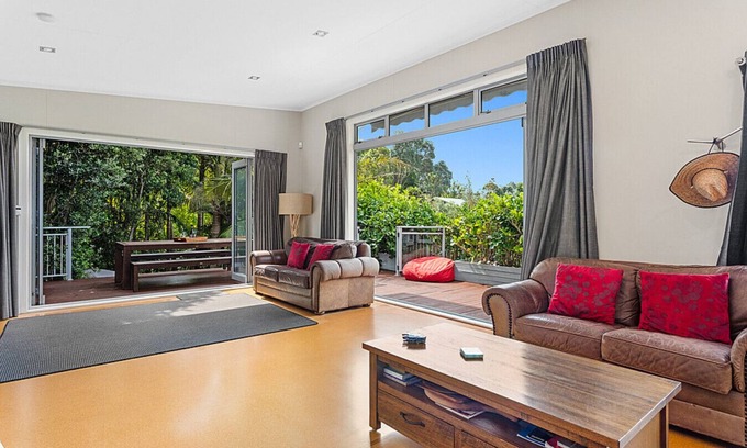 Step away from the noise of everyday life and escape to "The Secret Seaside Sanctuary" at Bryan’s Beach—your private hideaway, nestled in the tranquil surroundings of Ohiwa. Our secluded two-bedroom home is a peaceful sanctuary designed for up to four adult guests, making it the perfect escape for couples, friends, or anyone seeking to disconnect from the hustle of everyday life.