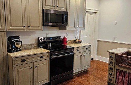 Come enjoy a stay at Springwood Farmstead! A working farm with a circa 1820 farmhouse, but with modern conveniences. Total privacy with multiple barns and grounds for a quiet stay. The house features four porches and a patio for outdoor relaxing, as well as grounds for outdoor fun. Grounds include a firepit, horseshoes, and space for much more. The historic home features five bedrooms, three of which have a private bath. A library with a daybed and a pullout/popup trundle is also featured. As well as an additional full and a half bath. Private baths are located in the two king size rooms as well as one of the queen rooms. The dining area can seat up to 18 people. And you will find a coffee bar on both levels of the home. The home is equipped with high speed internet as well as three smart TVs. This is a working small beef operation, we check our cattle daily, and feed as necessary. We will make every effort to be discrete and minimize any interruptions to your stay.