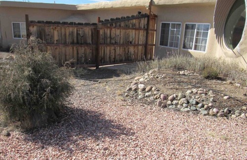 Architecturally elegant and unique design situated with beautiful views. This was a big home that has been duplex-ed and is about 1100 square feet. It was designed for privacy, so the entry door for the other home is on the opposite side of the house from where you enter. Very peaceful and quiet - the only house on the street. I call the area 'country suburbia' with houses peppered in the neighborhood about 1/4 mile away. This is a monolithic dome which means a huge balloon was blown up and sprayed with concrete before the balloon was popped. That part of the house is 34 ft diameter with rustic wooden floors & two 5 1/2 ft round windows over looking great views & yard. (The yard is not totally secure for pet safety.) Large kitchen, very roomy open plan space; king bed/queen bed in the loft, a smart TV and selection of DVDs for your entertainment. The picture shows a ladder going to the loft but it is now a stair case. The loft has an artsy 2 1/2 foot 'picket fence' as a wall. There is sight privacy, but due to it being a half wall, there is no sound privacy. Parents note: Please look at the pictures to decide if this room is child-safe for your needs. About 2 % of folks decide it's not right for them.I imagine it should be no problem unless they are climbers when you're not looking! Please ask for details if you're unsure. This is a wonderful space for retreats, writing, meditation, yoga, dancing, playing, fun! The sister dome is about 1000 square feet - and renting both sides is excellent for smallish events/retreats. There have been a few weddings held here. Location-location!! 4 miles to town.