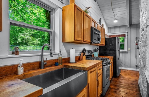 Escape to riverside tranquility at The Shire. A quant, quarried from the river stone cottage nestled on the banks of Little River. Wake up to breathtaking river views from the master bedroom and unwind in the cozy living room, complete with a stone gas log fireplace. Step outside and soak in the scenery from the screened-in deck hot tub or gather around the fire pit on the stone patio for an evening of roasting marshmallows. With a private boat dock and provided kayaks, adventure awaits right at your doorstep (don't forget your life jackets!). The fully fenced yard offers a safe haven for your furry friends, while the modern, fully stocked kitchen with stainless steel appliances makes meal preparation a breeze. When you're ready to explore, you're just a short drive from downtown Mentone, Desoto State Park, and Cloudland State Park, offering endless opportunities for outdoor recreation and scenic exploration.