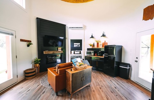 Our cottage offers an induction cooktop, microwave/oven/air fryer combo, gas grill(propane provided), refrigerator with freezer, Roku Tv, fireplace, great internet, comfortable patio furniture and a generous Master Spa Hot tub!