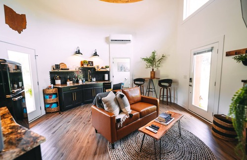 This memorable place is anything but ordinary. We can’t wait to host you in our Grain Bin/Silo vacation rental! It’s the first in the Hocking Hills region! The 25 ft ceilings make this rather tiny house feel so large! It’s definitely made for two in this cozy getaway!