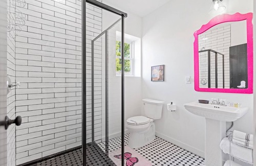 The Dolly is equipped with a TV, Wi-Fi, a Keurig, mini-fridge and toiletries. It has a queen size bed with an en suite bathroom. There is a laundry room shared by the 4 suites. SqFt: 220