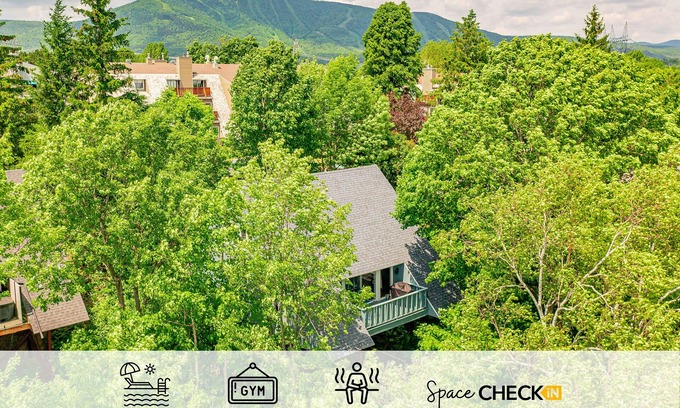 Experience the charm of a treehouse with a private balcony overlooking the forest—your peaceful retreat just steps from Mont-Ste-Anne!