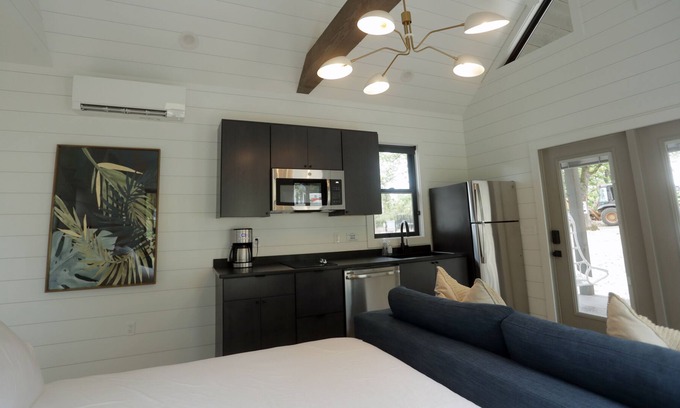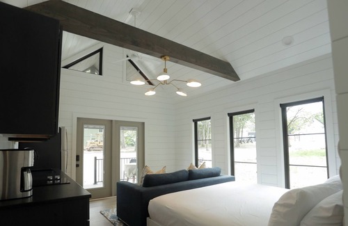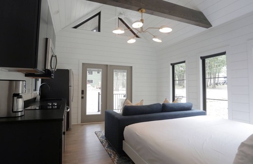 STUDIO CABIN - SLEEPS 4: You will love The Sloane. The modern design and shiplap walls provide a cozy space for you to enjoy your time at the lake. The cottage has brand new furnishings (2020) from Article, Wayfair, World Market, Homegoods, and Overstock.