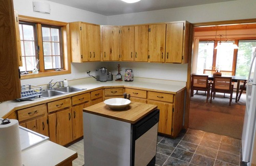 This home has a main level bedroom with king bed and full bathroom. Vaulted ceiling with ceiling fans along with wood fireplace. There is AC in this home along with a fan that brings up cooler air from the basement level. The switch is on the wall by the kitchen entrance. There is a ceiling fan in the upstairs bedroom and there is a work station as well and a 3/4 bathroom. Lower level bedroom has a king bed and the other lower level bedroom has a futon and 2 single beds which are bunks. Selection of games along with smart TV on main level and lower level. The back screened in porch has comfortable seating and access to the propane grill. There are 2 new adult bikes and 2 new kid bikes available to use for you as you wish. 2 kayaks with paddles are also for guest use. There are 2 adult life jackets and 1 child jacket along with 4 bike helmets if you need them. The famous Paul Bunyan Bike trail is 2 blocks away and the public access to Pine Mountain lake is north 2 blocks on Washburn Ave. Great restaurant in town on main street features burgers and more! Bait shop and restaurant on HWY 371 only a minute or 2 away at the Corner Store. Pine Mountain Lake features very good fishing and you can also enjoy all your water recreation. There is a dock provided on this property you may tie up if you wish. Please watch the weather. It is shallow for a ways out but it does stay about 1.5 to 2 feet deep depending on lake levels, so most boats and pontoons can navigate. The shoreline is a semi loam softer bottom with some weeds. Fire ring is down by the lake with 2 lawn chairs. Please bring your own firewood, you are welcome to any firewood left on the property. Propane grill is on the back deck and ready for your use. Kitchen is fully stocked along with Keurig coffee maker. There is small Blvd that runs in front of this property.