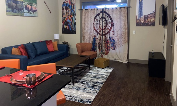 Kick back and relax in this calm, stylish space. Whether your in town visiting or relocating, our space is the place to be. Oklahoma prides itself on many things as proud American state. Our design is is authentic Oklahoma themed. We are located central to all the amenities that Oklahoma City has to offer. Our place has close-by eateries and entertainment that’s in walking distance for convenience.