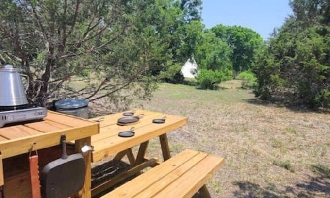 The Stallion Tent (new ac installed) is located in Kempner. The Stallion Tent (new ac installed) provides accommodation, featuring Security/Safety, Child Friendly, among other amenities. This RV Rental features Security/Safety, Child Friendly, to make your stay a comfortable one.