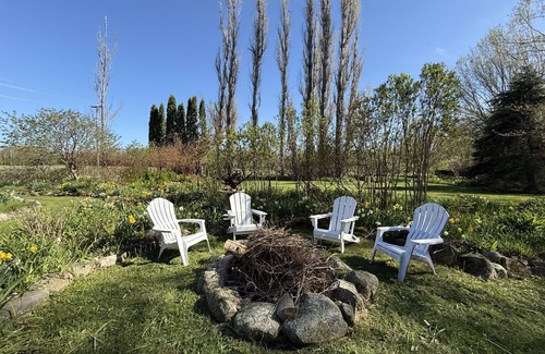 This unique home is located just a few miles from the town area on the corner of Kings Highway and Paid En Ogs Road. The home was built in the 1800’s with current updates while keeping its historic charm. There are 2 bedrooms and 2 baths: 1st bedroom (Full size bed) is located on the main floor with an additional sitting space; there is a bathroom located on the main floor off the living area. The 2nd large bedroom (queen size bed) is located upstairs with a full bathroom. Kitchen has newer appliances and is equipped with all the comforts of home. There is a deck of the living area for outdoor enjoyment along with a firepit. Beautiful landscaping throughout the property along with a couple groomed trails. Additional amenities: Linens and bath towels are included, Roku TV, Wifi, washer & dryer, dishwasher.