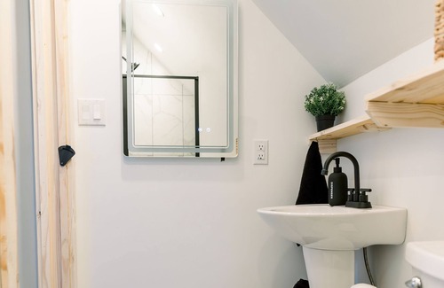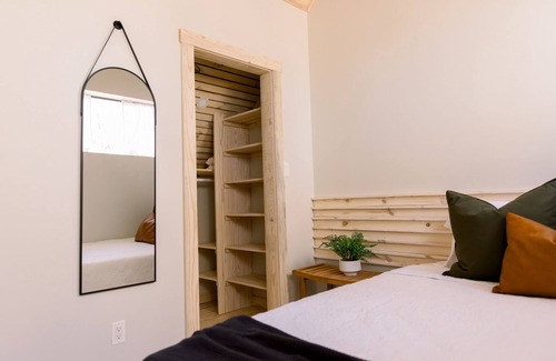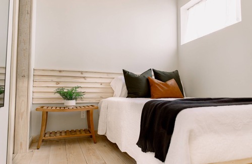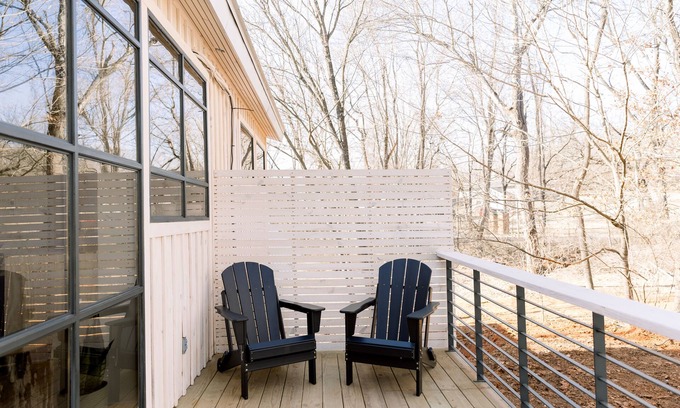 Embrace the clean, modern aesthetic with minimalist design elements creating an inviting atmosphere. Enjoy morning coffee and a delightful breakfast from The Station steps away, setting the tone for a day of relaxation amidst natural beauty.