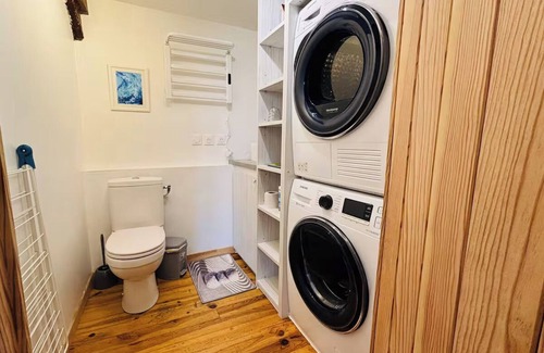 Feel free to prepare a home-cooked meal with the oven, stovetop, and microwave. Bathroom amenities include a hair dryer, towels, and toilet paper. And because there's a washer and dryer, you can go a bit lighter on your packing. Other amenities at this 2-bedroom, 1-bathroom rental include bed sheets, an ironing board, and heating.