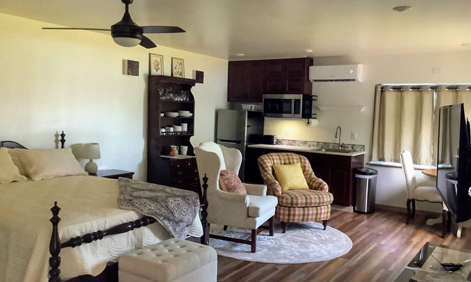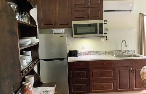 The Suite is newly built and classically decorated in a comfortable, vintage style. It has a dining area with a view of the lake, and a well appointed kitchenette including a microwave/convection oven, toaster, coffee pot, rice cooker, electric wok and hot plate for all of your basic cooking needs. The bathroom is spacious with a large shower and walk-in closet.