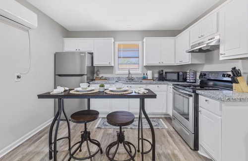 The apartment features one spacious bedroom with a comfortable king-size bed and a large smart TV. The fully equipped kitchen is perfect for preparing delicious meals, with stainless steel appliances, granite countertops and all the cookware and utensils you need. The cozy living room with a large flat-screen TV allows you to relax after a long day of sightseeing. The apartment also has a private bathroom with a tub/shower, and we provide fresh towels and linens for your convenience.