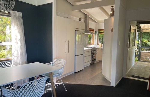 Inside, you'll find a light filled and elegantly furnished space with everything you need for a comfortable stay. The open-plan living and dining area flows seamlessly onto the deck, where you can enjoy morning coffees at sunrise or sunset drinks with friends.