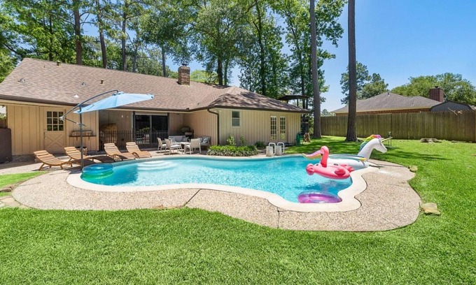 Best-rates for the Huntsville house starts from $292 per night with includes Barbecue/Outdoor Cooking, Kitchen, Parking, Balcony/Terrace, Breakfast, Child Friendly, Internet, Pool, Wheelchair Accessible, Accessibility, Bedding/Linens, Bar StayAndPlay offers fully equipped golf villas, golf hotels, golf resorts, luxury golf cabins, and exclusive golf retreats, making it easier than ever to find your perfect golf escape — ideal for families, peaceful getaways, or pet-friendly retreats with the whole crew.