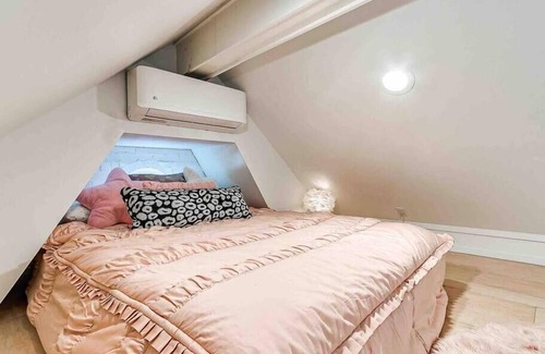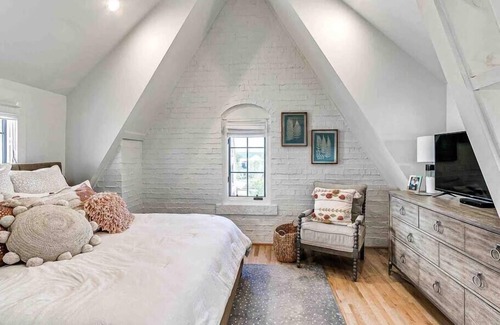 Inside you will enjoy a gorgeous open concept living space featuring a pull out sofa for extra guests, flat screen tv, and luxurious furnishings. The exposed brick interior allows colorful art to pop off the walls! The kitchen is fully stocked with all the dishes and essentials you will need during your stay. 4 barstools and an oversized kitchen island welcome you to enjoy meals with your group. Your vacation should be no work, all play! We provide grocery and meal delivery when you make arrangements in advance of your stay.