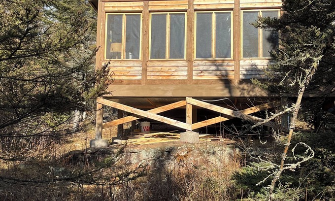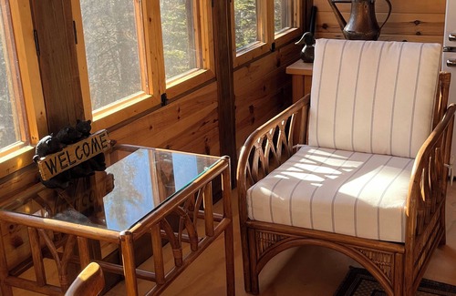 There is a front and back door to the bunkhouse, a wonderful light and airy feel to the space and yet it is cozy and comfortable. We know you will enjoy your stay here on the rugged granite and treed hillside of Lake Superior in it's natural state.