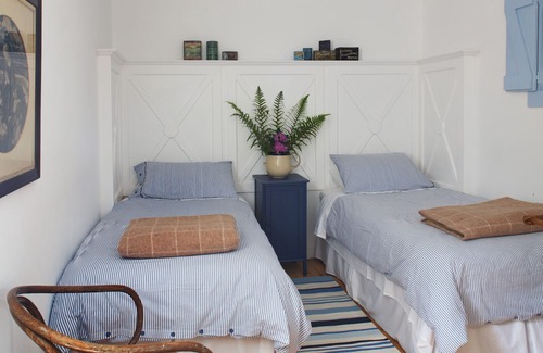 The second bedroom is located on the ground floor and has two single beds. There is a bathroom ensuite with a glassed in shower unit. All bedlinen is supplied with good duvets and extra blankets. We also know how important it is to have an assortment of fluffy towels supplied. There is a hairdryer in each of the bedrooms.