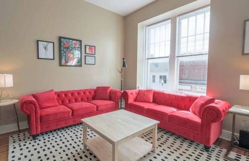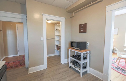 Welcome to our historic Airbnb. This one-bedroom, one-bathroom apartment above a fantastic restaurant offers a unique blend of history and modern comfort. Accessed via private stairs with coded entry, it's a cozy retreat with an HD TV and streaming package in the living room.