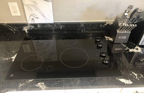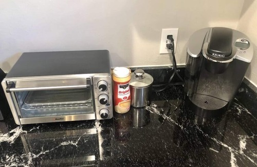 The suite is completely private, with its own driveway, parking space, and entrance. There is a queen sized bed, large closet with ample shelving and a full bathroom with walk-in shower. The apartment has a beautiful kitchen with a full-size refrigerator, cooktop, toaster oven, pots and pans, Keurig coffee maker, and a full set of dishes and cooking utensils. It also boasts a huge 58-inch flat screen Roku TV for you to enjoy! This suite is cleaned and sterilized between each guest with your safety in mind.