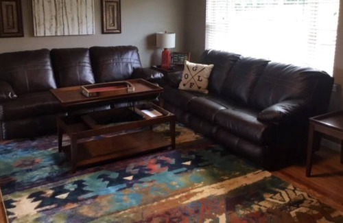 Welcome to the Tee House. We have 4 full size beds. 1 hide-a-bed sofa, and a large sleep sofa. They are in 3 rooms (suggested maximum of 6 adults). We have 2 full bathrooms, living room with 65" TV/DirectTV, Full laundry room, dining room, kitchen, deck with grill and dining table , High Speed Fiberoptic Wi-Fi, towels, linens, pillows, dishes, silverware, cookware, and coffee are all included on site. Golf cars and chargers can be accommodated upon request. No pets/ No Smoking. Our $135 rate is for the first two occupants and $30/person after that up to 6 occupants.
