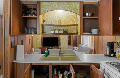 The Time Capsule features all the modern amenities with the retro nostalgia and flare! It has the comforts of a full kitchen and full bathroom for your use! The private fenced 2 acres yard provides a tranquil setting for outdoor gatherings or simply soaking up the sunshine. Comfortably sleeping 5, and with additional room dining inside, this is the ideal spot for your next vacation.