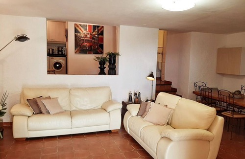 the apartment on the ground floor with private access 2 bedrooms sleeps 4 bathroom and separate toilet, washing machine dishwasher fitted kitchen TV lounge, outdoor terrace with pool view. below in the garden a .pool house with summer kitchen equipped with large plancha, deckchairs and shower